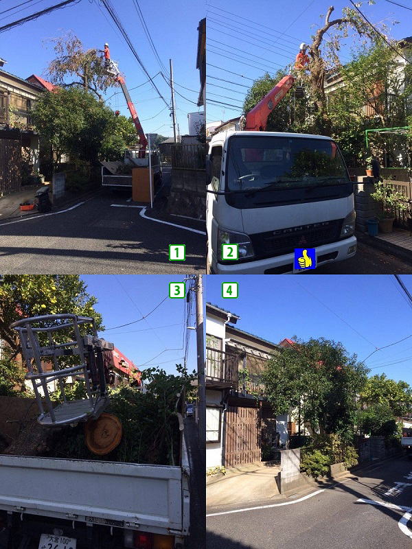 今回の作業員はハシゴも使わず木に登り、カット作業は30分程度で完了しました。